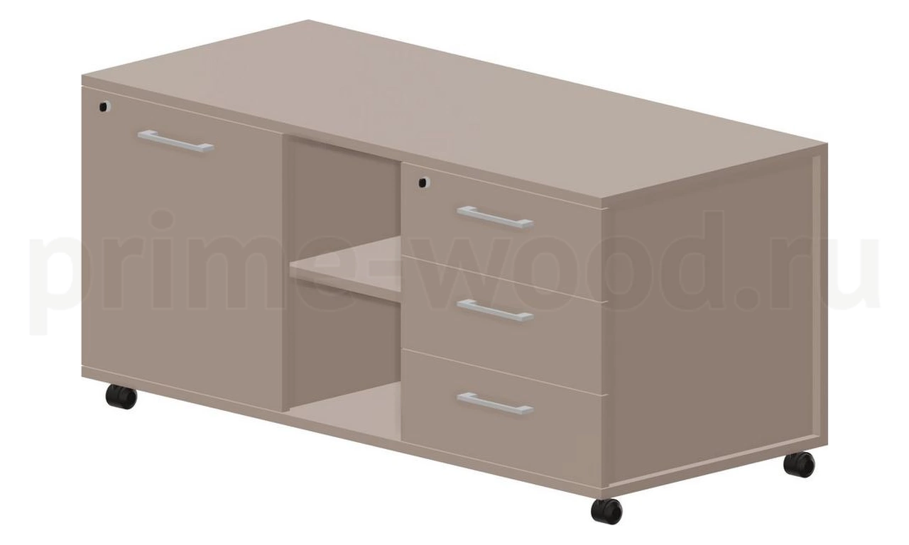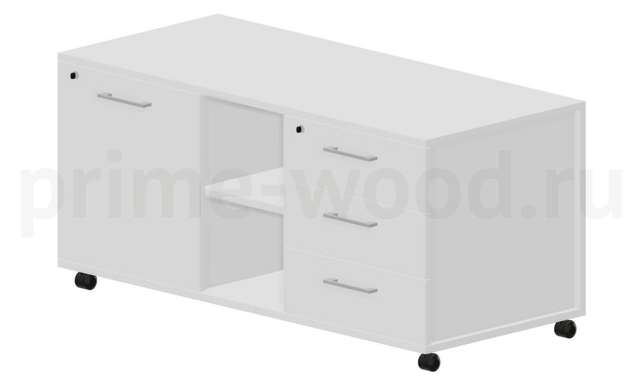 Тумба мобильная сервисная правая (3 секции, усиленные колёсные опоры, ручки - алюминий) 120х53х57см