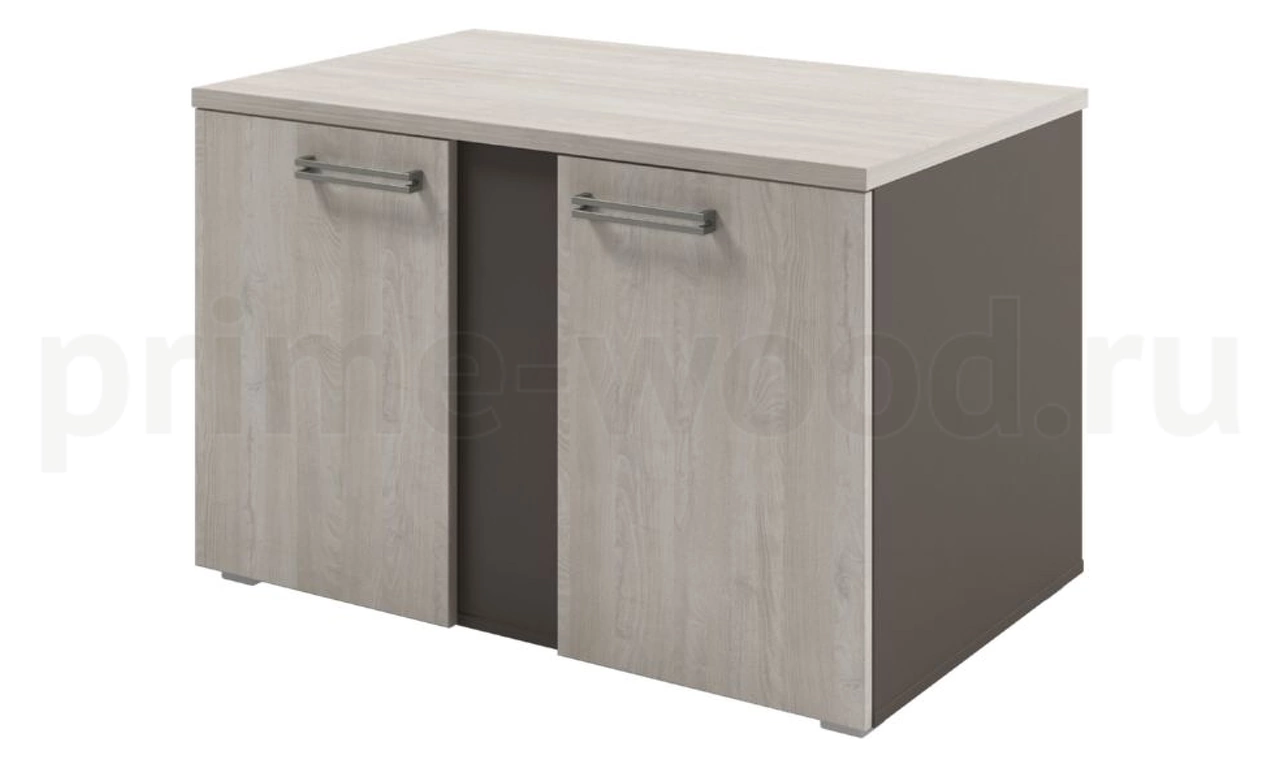 Тумба для оргтехники широкая. Внутри два отсека со съемными полками. Полки возможно устанавливать на разную высоту.